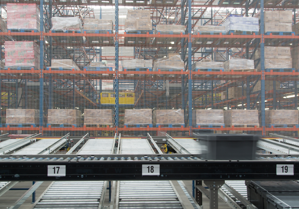 物流システムの自動化に伴い、各メーカー様ではロボットが商品を決められた棚に納めております。